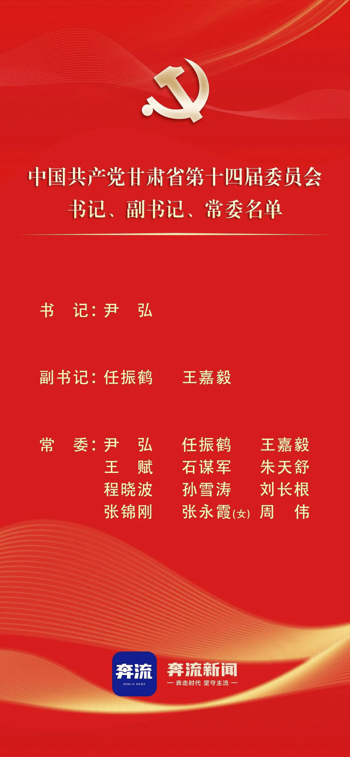 中国共产党甘肃省第十四届委员会第一次全体会议举行,尹弘当选为省委书记,任振鹤王嘉毅当选为省委副书记